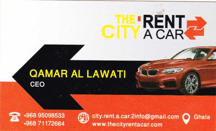 Browse business card listing of car rental companies and contact them directly for the best rates and flexible rental options. many providers offer airport pickup, long-term leasing, and chauffeur services to meet your travel and business needs in Oman.